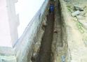 Bild 1: Ausheben der Baugrube bis auf Fundamentsockel und Säubern der Kellerwand, der Untergrund muß tragfähig sein.