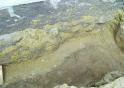 Bild 3: Die BENTOFILL Dichtmischung (gelbe Färbung) wurde auf diesem Bild in entsprechender Stärke eingebaut und verdichtet; der ebenfalls verdichtete Füllboden (braune Färbung) ist klar vom BENTOFILL getrennt.