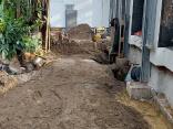 Bild 5: Die BENTOFILL Dichtmischung ist immer mit einer Abdeckung zu versehen,z.B. mit Betonplatten oder Pflastersteinen. Wie auf diesem Bild zu sehen ist, kann auch ein Füllboden als obere Schicht verwendet werden. Dabei ist das Gefälle stets so anzulegen, dass anfallendes Wasser vom Bauwerk weggeführt wird.