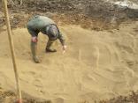 Auf den Fotos ist die Abdichtung von Amphibiengewässern mit HERAL QuellMix 0/2 DS auf einer ehemaligen Schuttkippe mit extrem heterogenen Bodenverhältnissen zu sehen. Die Arbeiten wurden im November bei leichtem Bodenfrost und Schneefall ausgeführt. Teilweise beträgt die Dichtungsschicht nur etwa 5 cm, trotzdem hat sich nach den ersten Regenfällen die Dichtigkeit auch bei diesen geringen Einbaustärken erwiesen.
