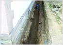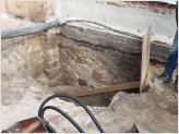 Bild 1: Ausheben der Baugrube bis auf Fundamentsockel und Säubern der Kellerwand, der Untergrund muß tragfähig sein.