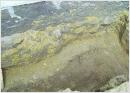 Bild 3: Die BENTOFILL Dichtmischung (gelbe Färbung) wurde auf diesem Bild in entsprechender Stärke eingebaut und verdichtet; der ebenfalls verdichtete Füllboden (braune Färbung) ist klar vom BENTOFILL getrennt.