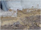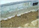 Bild 2: BENTOFILL ist in einer Stärke von 20 cm zwischen Kellerwand und Schalbrett einzufüllen. Gleichzeitig wird mit dem Einfüllen des Füllbodens auf der anderen Schalbrettseite die Baugrube aufgefüllt. Alle 20 - 25 cm Füllhöhe ist BENTOFILL und der Füllboden lagenweise mit einem Vibrationsstampfer sehr gut zu verdichten (97 % Proctordichte); das Schalbrett ist vorher zu entfernen.