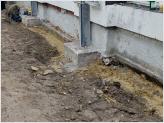 Bild 5: Die BENTOFILL Dichtmischung ist immer mit einer Abdeckung zu versehen,z.B. mit Betonplatten oder Pflastersteinen. Wie auf diesem Bild zu sehen ist, kann auch ein Füllboden als obere Schicht verwendet werden. Dabei ist das Gefälle stets so anzulegen, dass anfallendes Wasser vom Bauwerk weggeführt wird.
