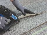 Verkleben mittels Schmelzkleber bietet hohe Sicherheit gegen Verschieben, Faltenbildung und Eindringen von Abdeckmaterial in die Überlappung. Auch für Grammaturen unter GRK 3 geeignet.