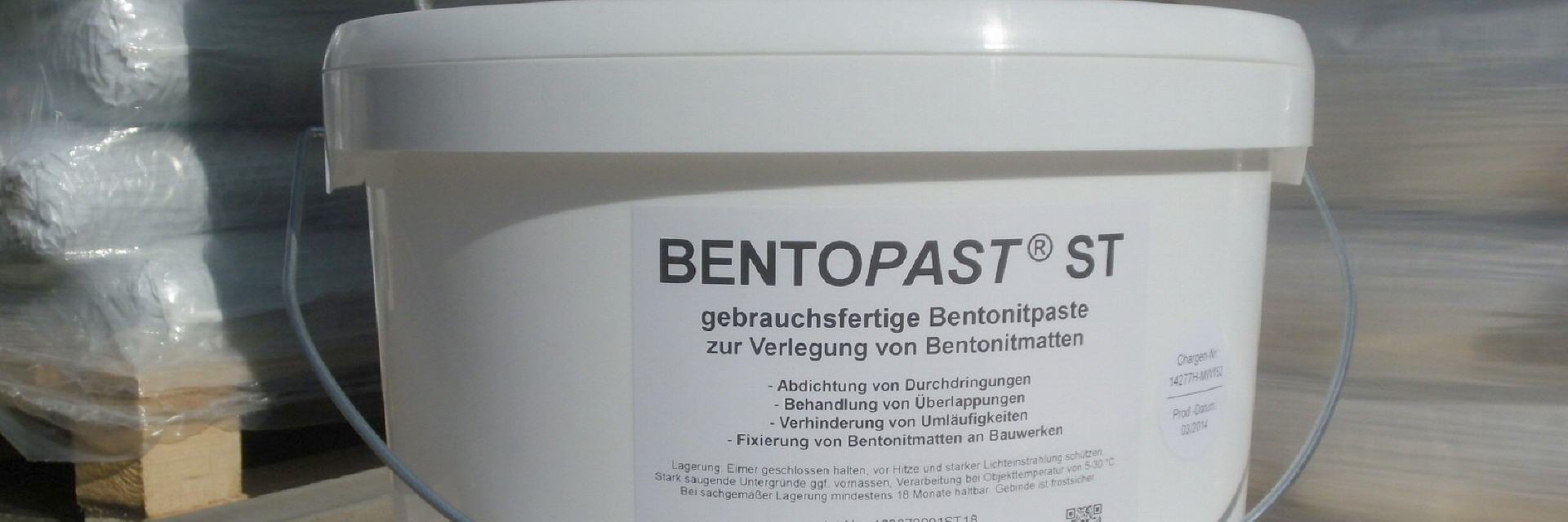 BENTOPAST ST Bentonitpaste kommt bei der Verlegung von Bentonitmatten zur Behandlung der Überlappungen zum Einsatz. Durch das Einspachteln von BENTOPAST ST lassen sich Bentonitmatten sehr gut an Bauwerke anschliessen und fixieren. Besonders bei Abdichtung von Durchdringungen sind Pasten praktisch unverzichtbar.
