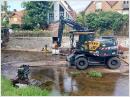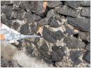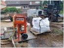 Sehr gut zu sehen ist, wie das frisch verpumpte Produkt in einer Wasserrinne sofort eine Membran aufbaut und davon nicht entmischt und abgetragen wird.