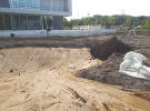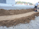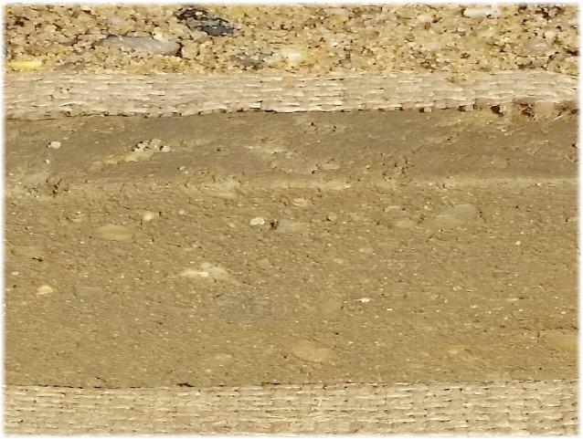 ÖkoPond eingebaut und dynamisch auf mind. 95 % DPr. verdichtet, die fertige Schicht sollte etwa 10 cm betragen. Auf die ÖkoPond-Dichtungsschicht wird zur Trennung wiederum eine Lage Jute-Gewebe verlegt, bevor die Auflast aufgebracht wird.